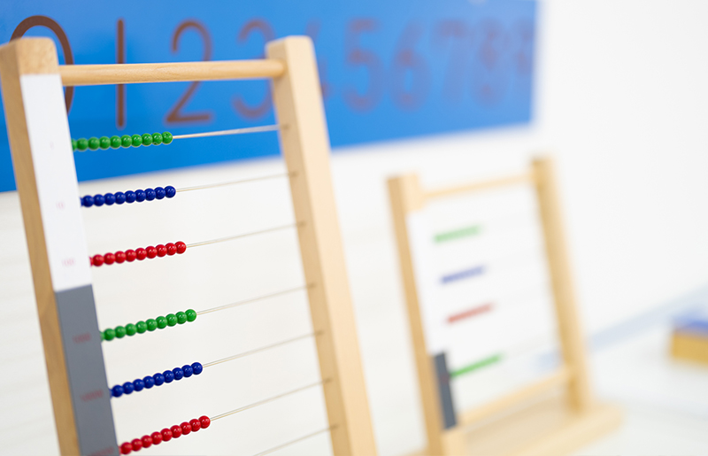 数概念を認識する分野です。「量を認識すること」「数を数えること」「数を書くこと」という数を表す3つの形態を一致させていきます。 そして十進法、加減乗除の演算へと発展させます。